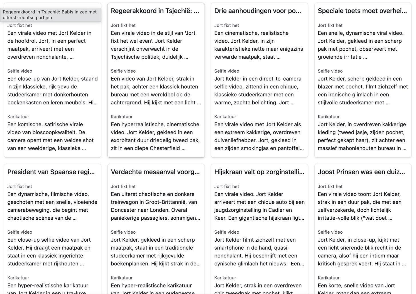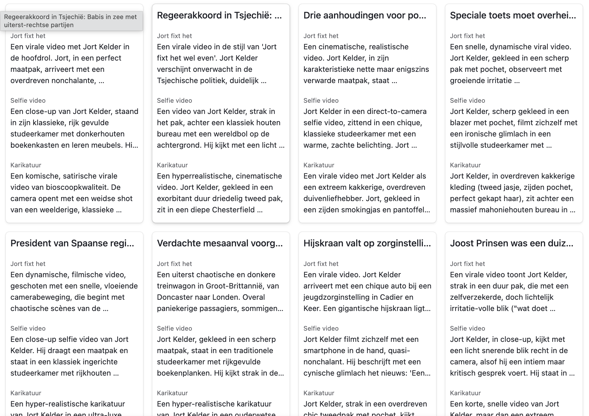 We wilden laten zien dat je een social media-account helemaal kunt automatiseren met AI. Voor dit experiment maakte ik samen met Wietse Hage een pipeline met Relay, die realtime en automatisch prompts genereerde voor videomodel Sora 2 aan de hand van NOS-nieuwsberichten.